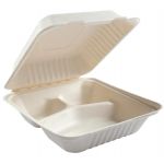 PrimeWare DHL-83 Deep Hinged Lid Container 7.875" x 8" x 3.19", White, Bagasse/Sugarcane, 3-Section, Medium Molded, with Hinged Lid