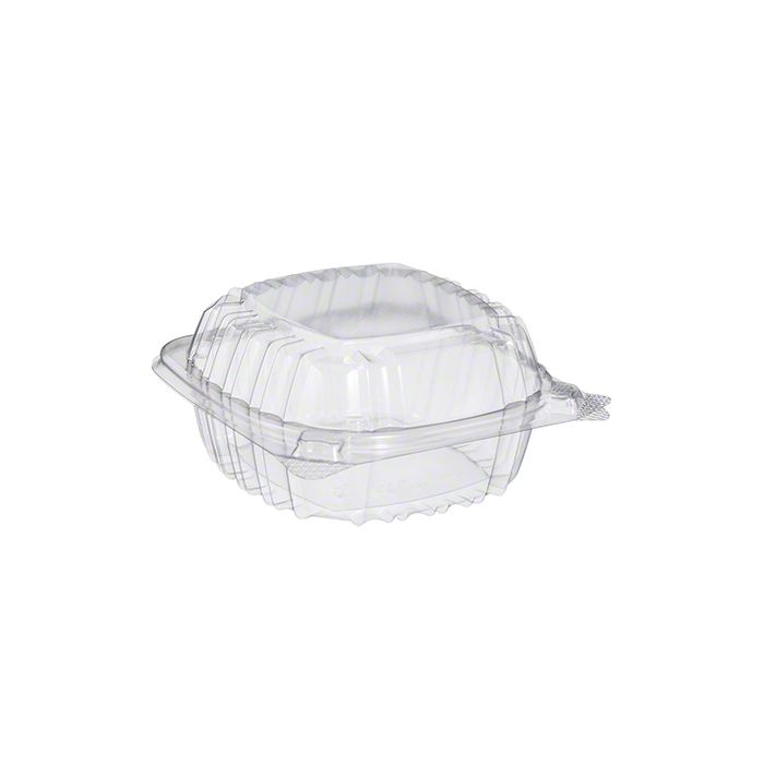 Secure your products in style with the CONT PLAS HNGD 5" CLR PS 5.3X5.4X2.6 CLEARSEAL container. This clear, hinged clamshell packaging:
