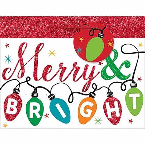 merry and bright glitter bag 7x9x4 w/ gift tag