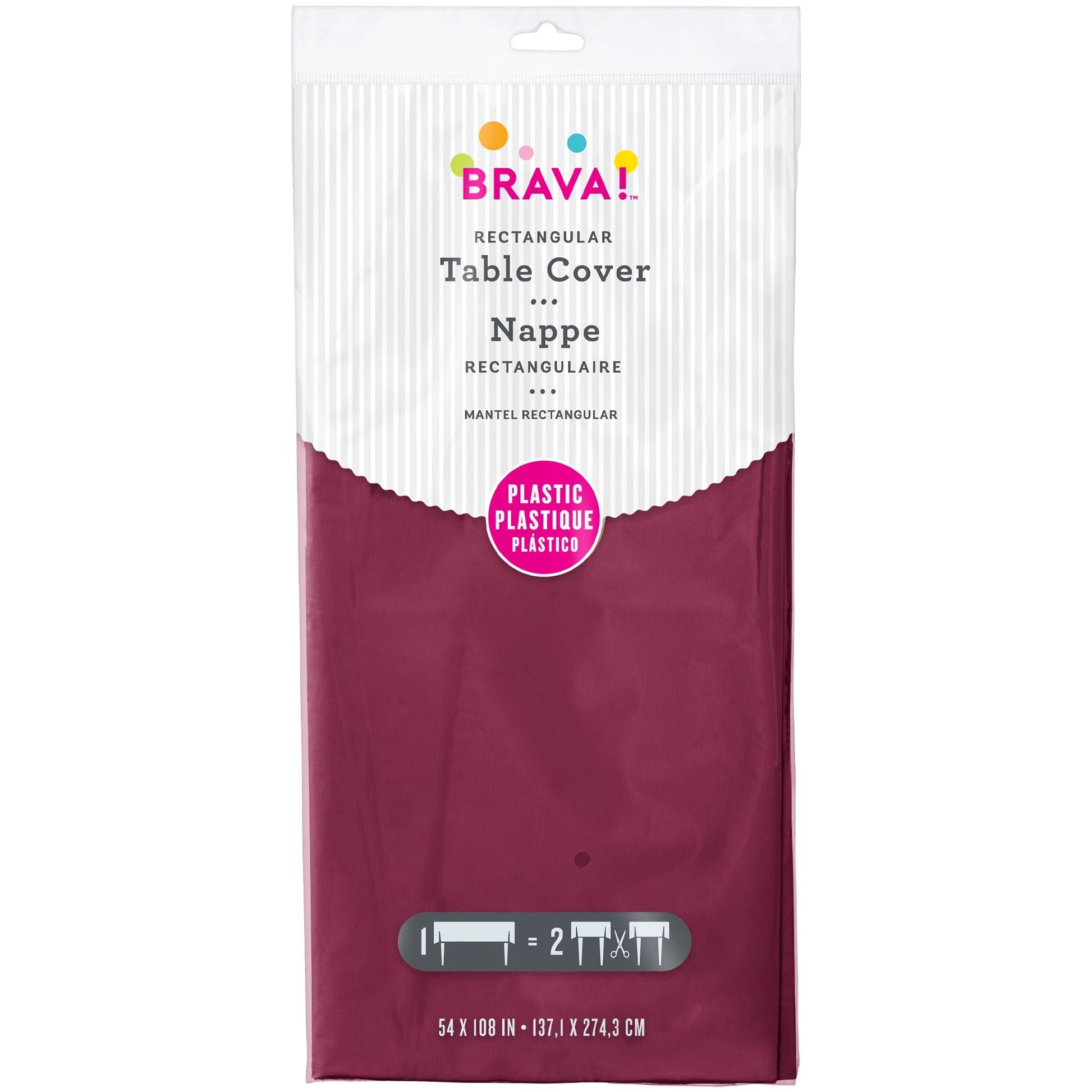 54" x 108" Plastic Table Cover - BERRY SOLD AS EACH