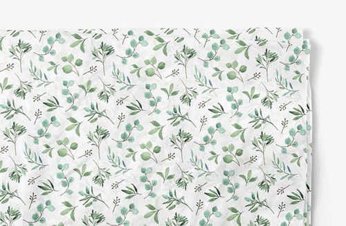 20"X30" white tissue with green EUCALYPTUS leaves that will add dimension to gift bags with tissue paper. Each sheet has a machine finish that is smooth to the touch. .